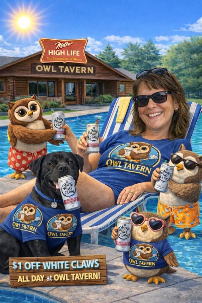 Groundhog Day? Déjà vu even?🤣 🤩Happy birthday to our very own Robin Snyder Mooney! Yep! That’s right, she seeks the summer pool days, endless White Claws & is Mom to George(dog)! 🩷🤍🖤! If I know her correctly, I bet she will be “hanging” around the Owl @3! 😏 $1 off ALL WHITE CLAWS! Cheers to you, Robin! 🥂 @topfans Owl Tavern #sun #owltavern #whiteclaw #birthday #Wisconsin #lakegeneva #Cheers #sunshine #pool